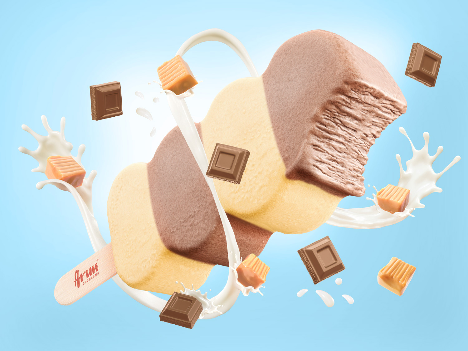 CGI Key Visuals of Ice Cream, Splash, and various ingredients for the Indian brand Arun.