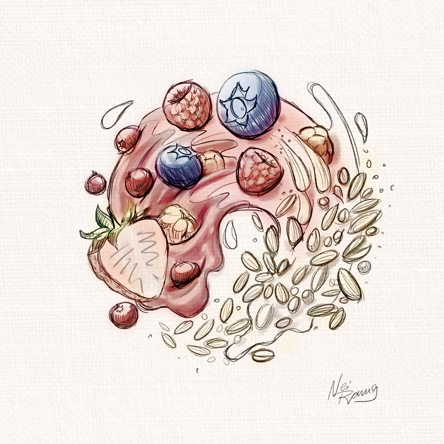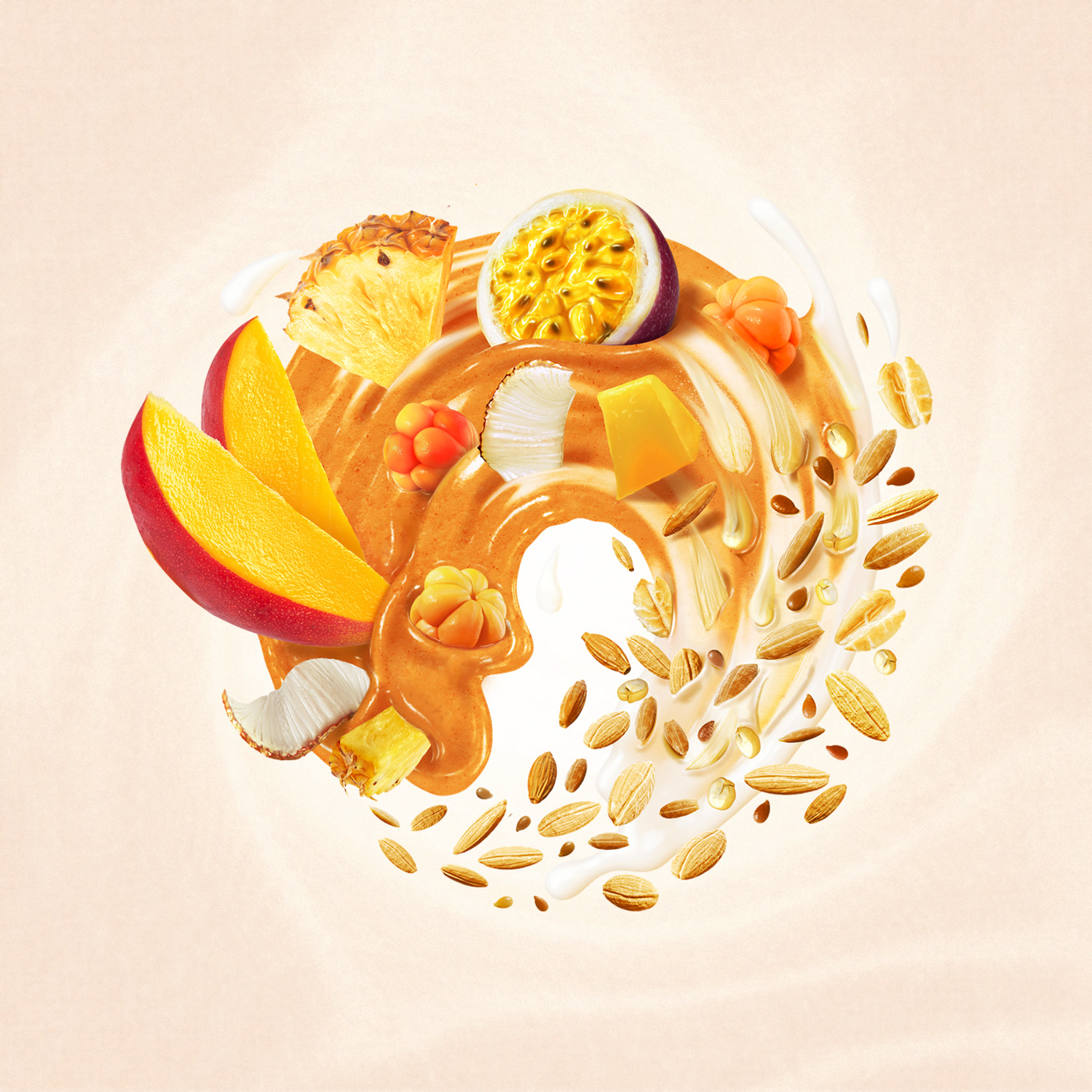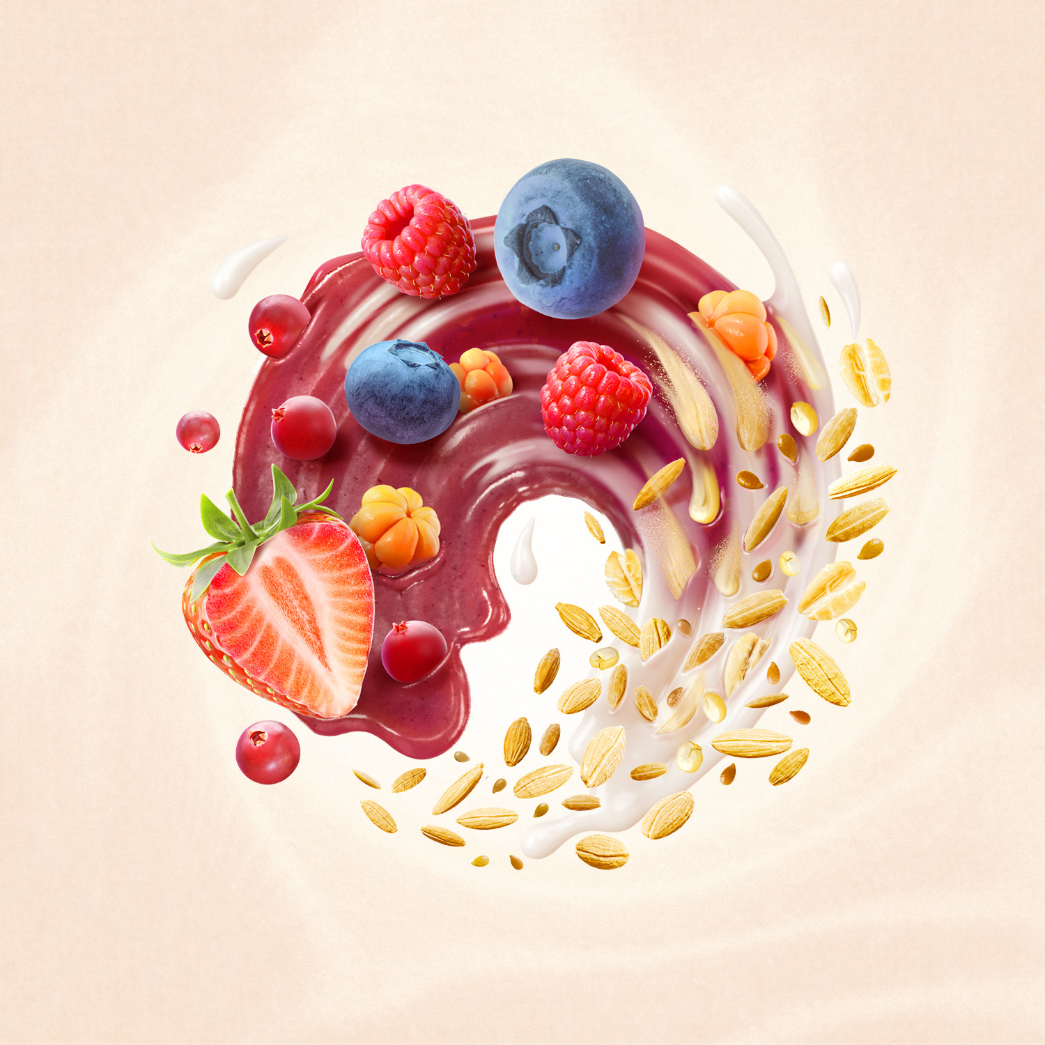 3D illustration key visuals for Skyr Yogurt with fruits made on Cinema 4D and Red Shift