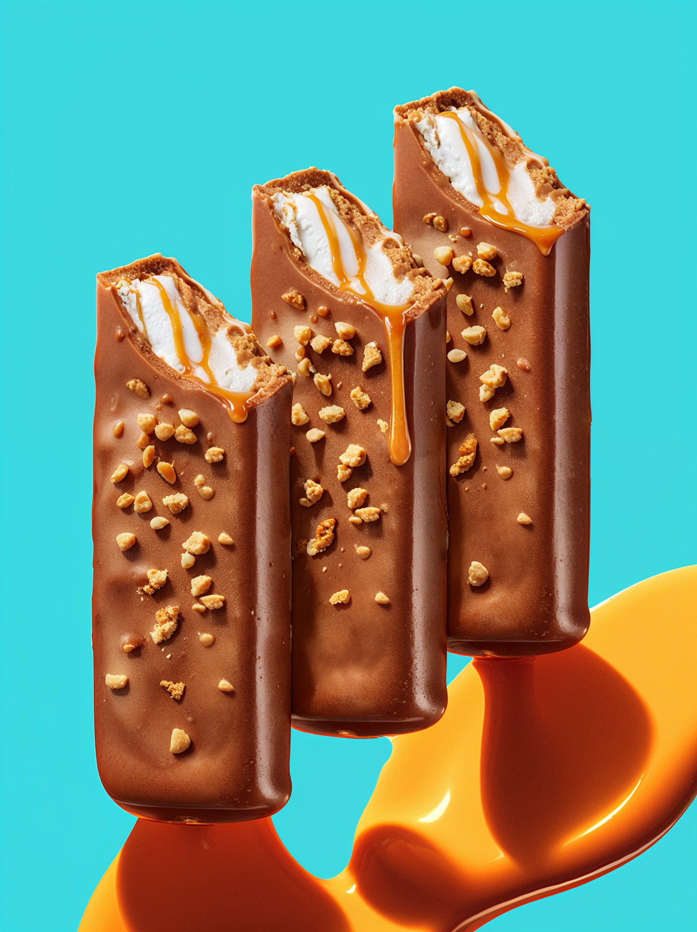 CGI chocolate - Ice cream bar with caramel drip